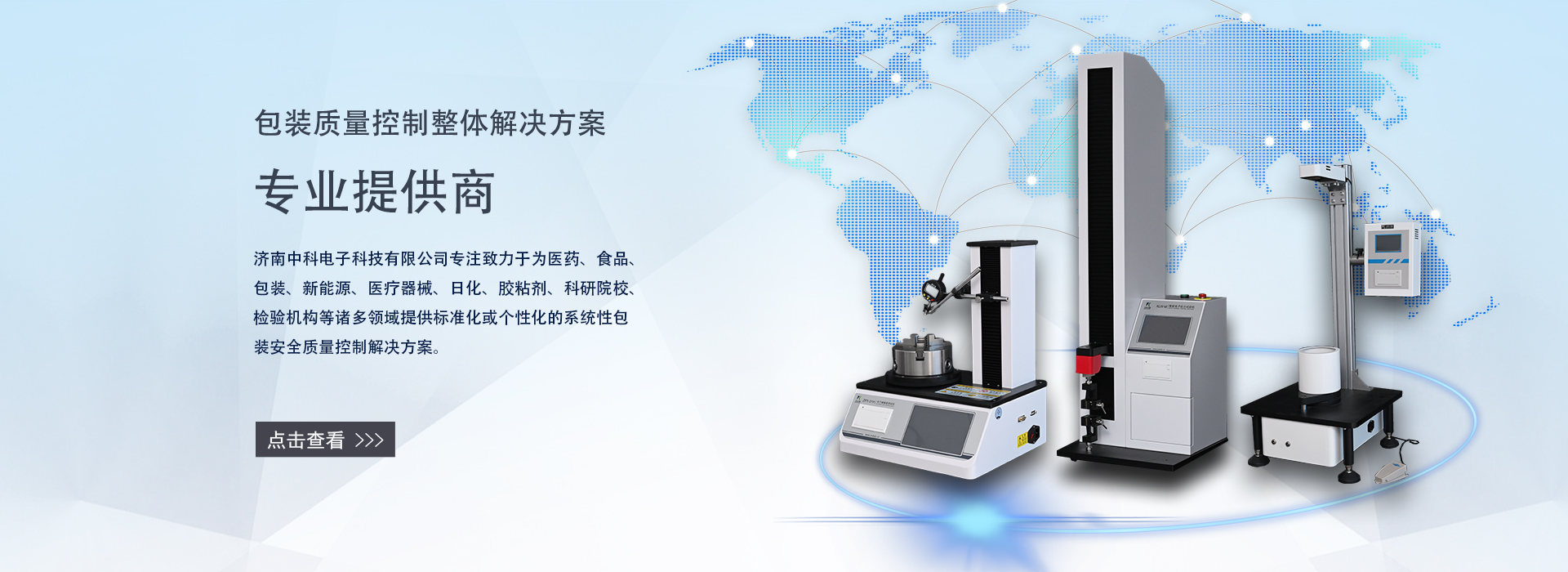 濟(jì)南中科電子科技有限公司是一家集包裝及膜材檢測儀器的研發(fā)、制造、銷售和服務(wù)為一體的專業(yè)科技公司。專注致力于為食品、醫(yī)藥、包裝、新能源、醫(yī)療器械、石化、日化、膠粘劑、科研院校、檢驗(yàn)機(jī)構(gòu)等諸多領(lǐng)域提供標(biāo)準(zhǔn)化或個性化的系統(tǒng)性包裝及膜材質(zhì)量控制解決方案。